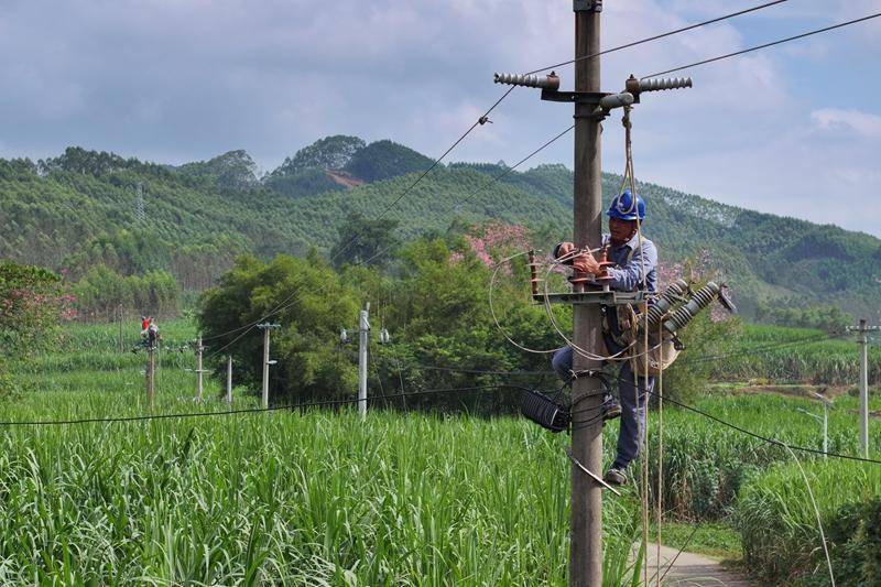 柳城供电局组织工作人员有序的进行电网升级作业。马聪摄